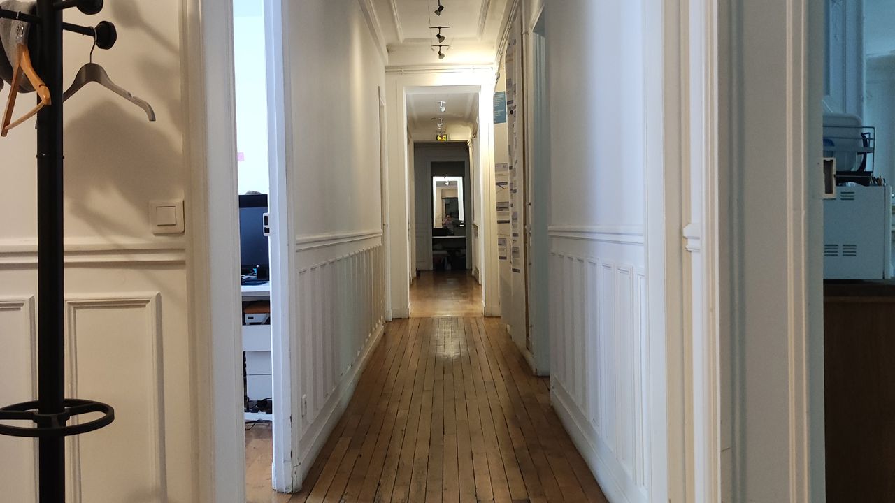 Le bureau “Lawrence Lessig”, un bel espace de 25.95 m2, est disponible ! Parquet point de Hongrie, moulures, 2 grandes fenêtres, un bel espace au sein du 137.